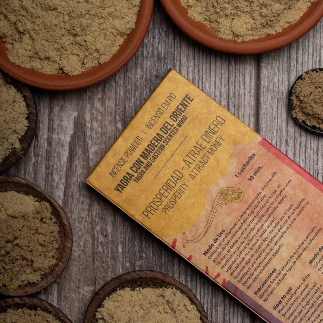 - Yagra: La resina di colore perla, con il suo aroma intenso, è un potente magnete per attrarre denaro e prosperità.